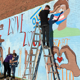 As the 2020-2021 school year began in August with students in distance learning, Natalie and her group met with Superintendent Paul Imhoff, Ed.D., and Principal Andrew Theado to get permission to create art on the outside of the high school to send a message of hope during a challenging time. The students talked about the continuing pandemic and the need to promote health and safety precautions, and they also discussed the racially motivated violence and ensuing anti-racism movement happening in the country and their hopes for peaceful change.